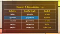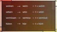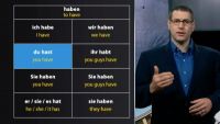 Via a love story, encounter irregular strong verbs in the present perfect tense. Along the way, find out where the terms weak and strong come from (hint: the same scholar who compiled a famous collection of German fairy tales). Then explore vowel changes, known as ablaut, which characterize strong verbs. Cover all seven ablaut classes. Also, learn about model verbs and mixed-class verbs.