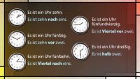 Wie viel Uhr ist es? (What time is it?) Learn to tell time and how to read a railway timetable. Rehearse using the prepositions um, von, and bis in a temporal context. Also discover that German has three distinct words that cover our English term, “time.” Then dive into possessive pronouns—in singular and plural, as well as nominative and accusative—picking up new vocabulary along the way.