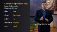 Coordinating conjunctions—such as aber, denn, oder, sondern, and und—allow you to link two dependent clauses in expressive ways. Get the hang of these simple words that let you say complex things. Then unlock the secret of German syntax with the Word Position Model. Finally, study a handy class of noun modifiers, called der-words, that have endings patterned after the definite article.