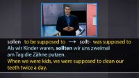 Delve into the checkered past of Professor Pfrehm as you learn about ... the past—the simple past, that is. This tense is different in form from the present perfect you learned in Lessons 13–15, but its meaning is the same, though it is mostly used in formal writing. Cover the simple past forms of the verbs sein, haben, and geben, and the modal verbs müssen, können, mögen, dürfen, wollen, and sollen.